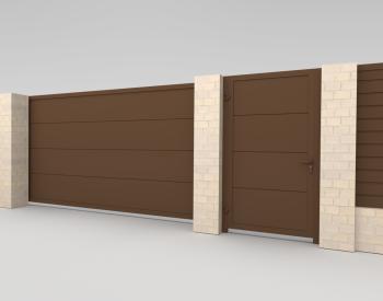 Для распашных ворот, помимо сэндвич-панелей, есть возможность изготовить заполнение из любых материалов: металлического штакетника, сетки, деревянных досок и других.